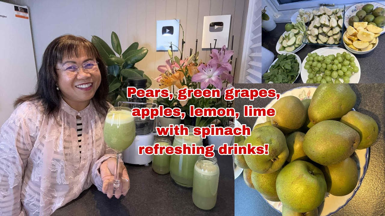 VideoHealthy How to make pears, green grapes, apples, lemon, lime with spinach refreshing drinks? 0 Share Check on YouTube healthy smoothie recipes 0 Share